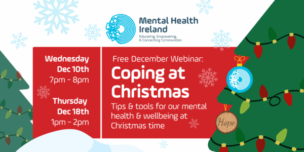 Our free December webinars offer practical tips and supportive strategies to help you mind your mental health during the festive season. The sessions will be delivered by Dee Lynch, Education and Training Coordinator at Mental Health Ireland, and will finish with a short Q&A.